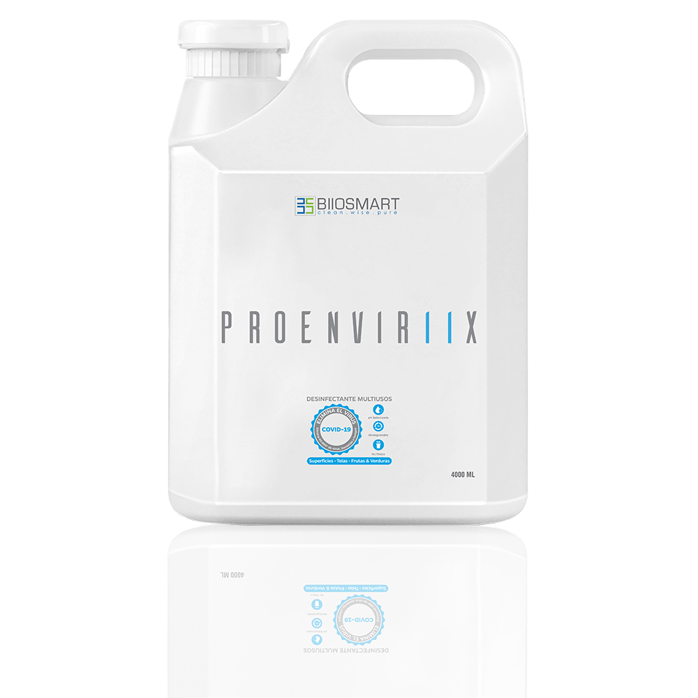 Descripción: Proenviriix es una solución desinfectante industrial y agrícola que es biocompatible con el cuerpo humano y no es tóxica para el medio ambiente.